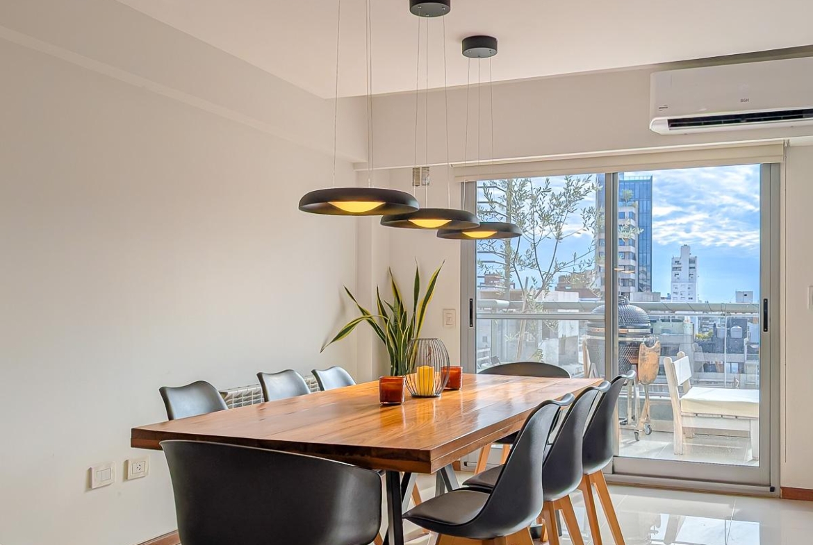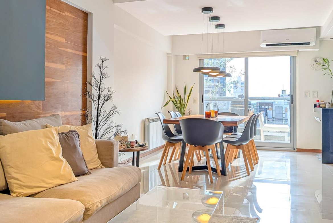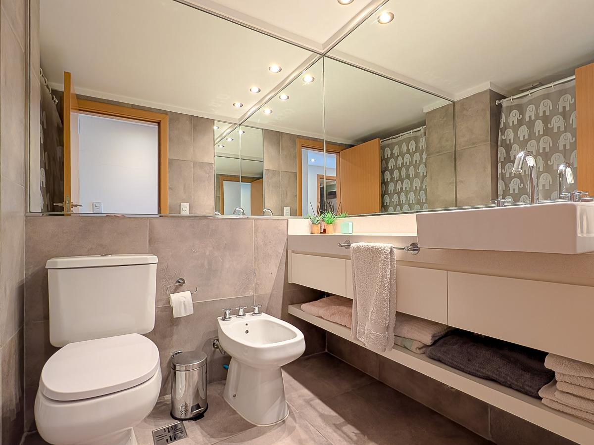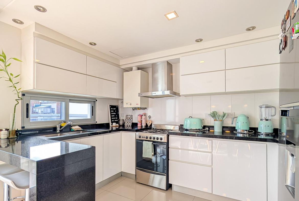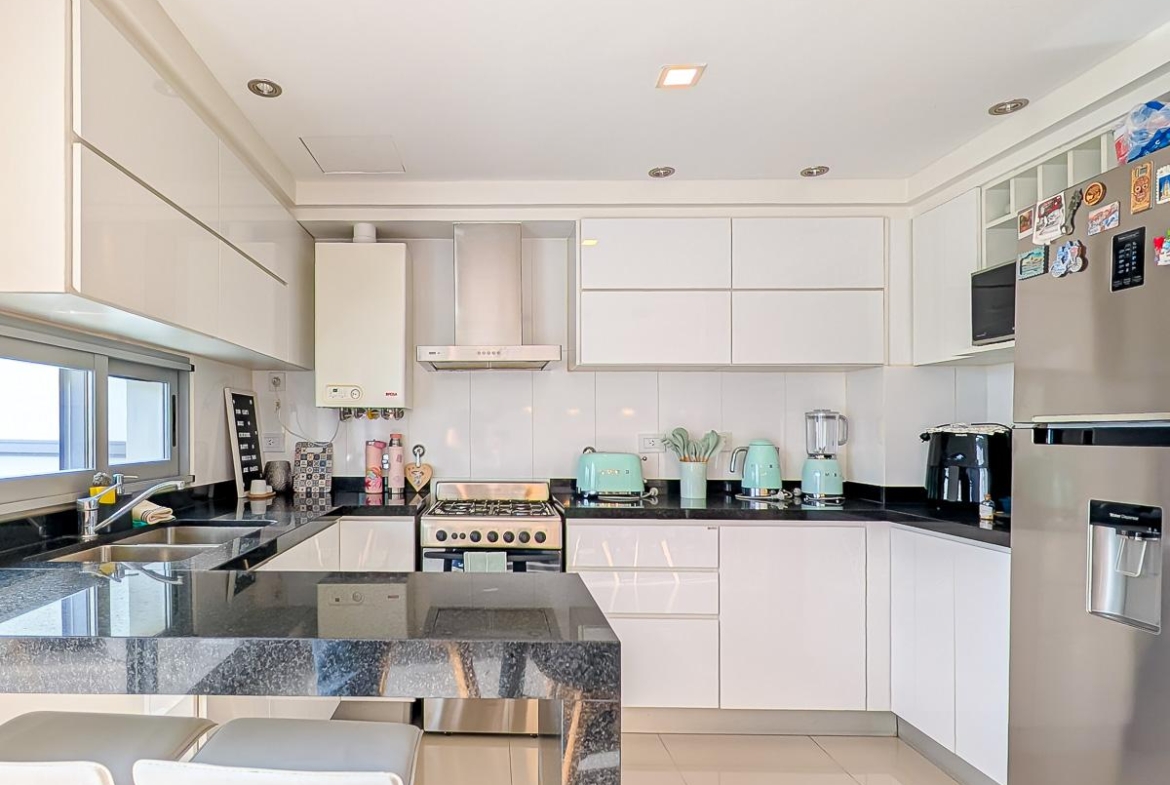 Ingreso con puerta blindada. Amplio Living comedor con salida al balcón terraza. Cocina semiseparada por barra desayunadora totalmente equipada. Dos dormitorios con vestidores y uno en suite. Otro baño completo. Lavadero Independiente.