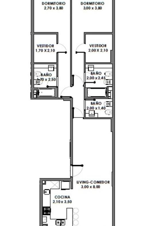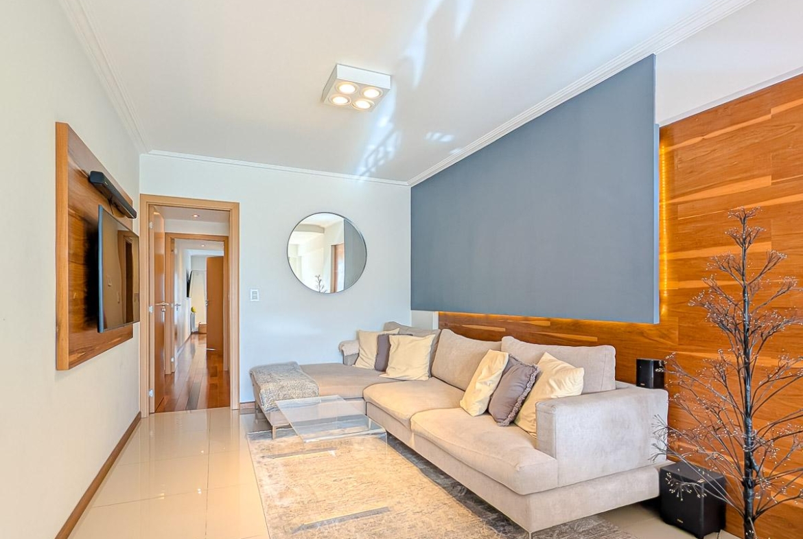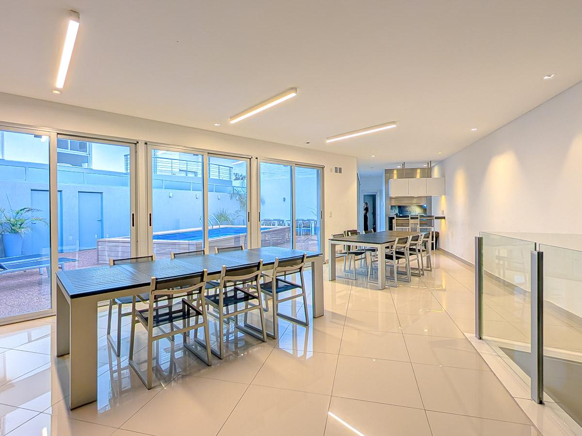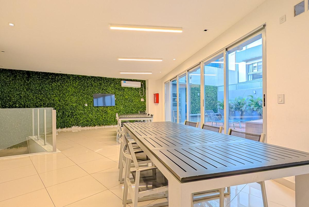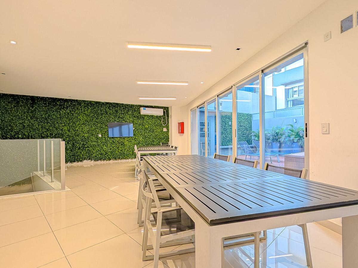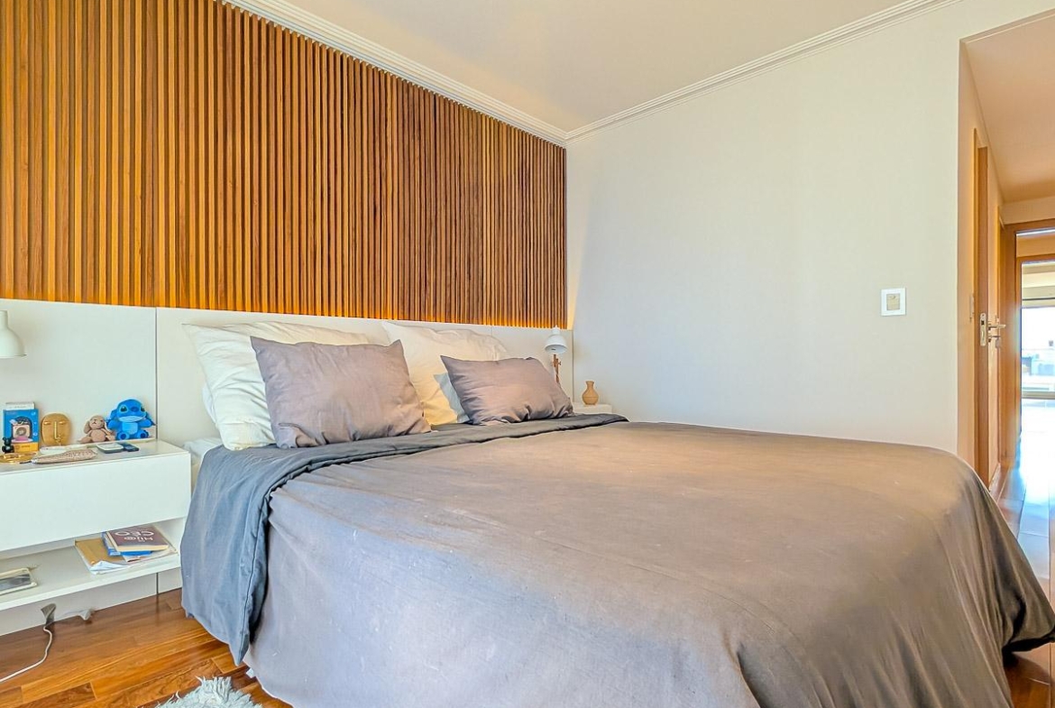 Ingreso con puerta blindada. Amplio Living comedor con salida al balcón terraza. Cocina semiseparada por barra desayunadora totalmente equipada. Dos dormitorios con vestidores y uno en suite. Otro baño completo. Lavadero Independiente.