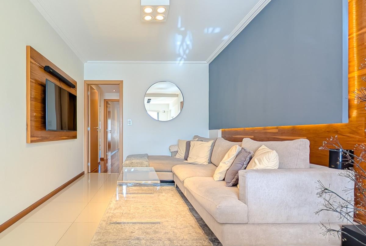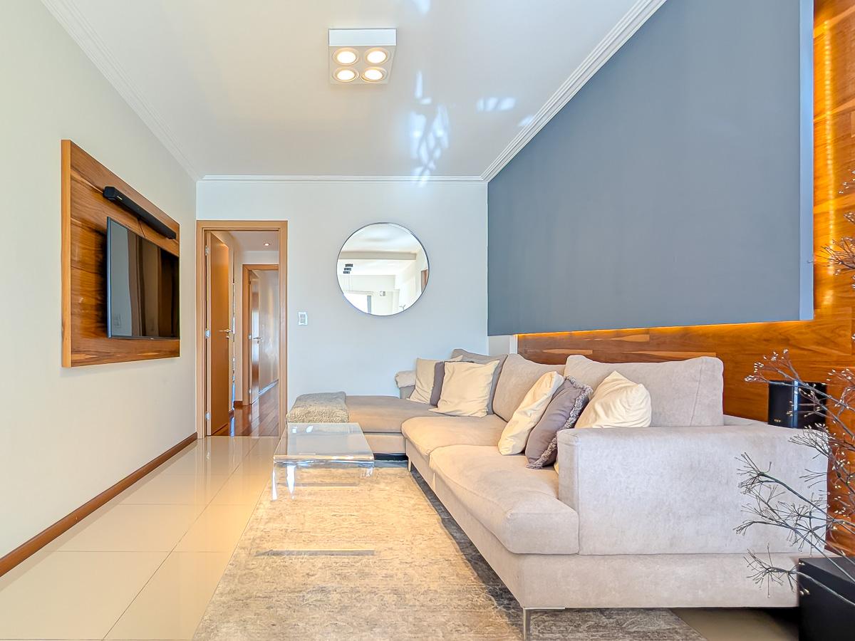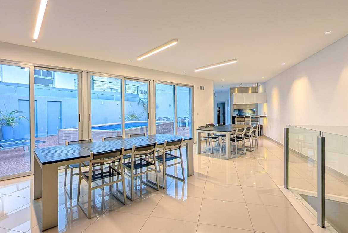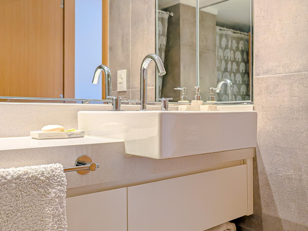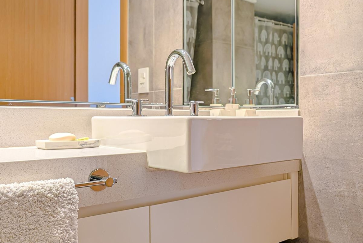 Ingreso con puerta blindada. Amplio Living comedor con salida al balcón terraza. Cocina semiseparada por barra desayunadora totalmente equipada. Dos dormitorios con vestidores y uno en suite. Otro baño completo. Lavadero Independiente.