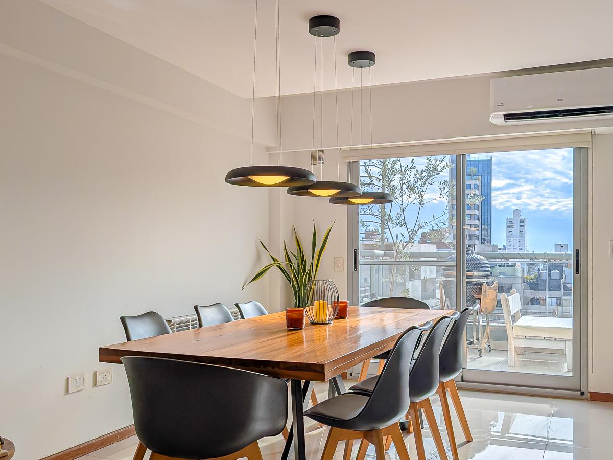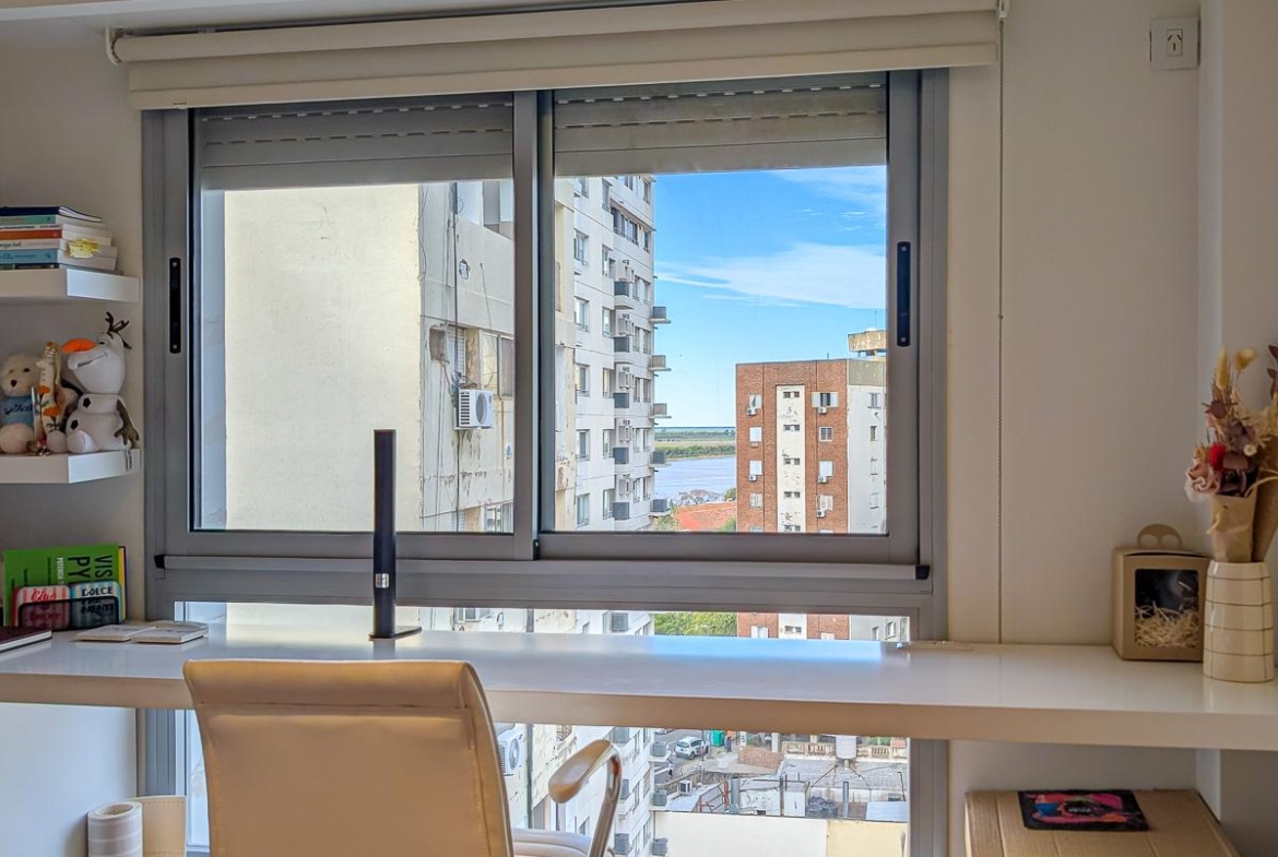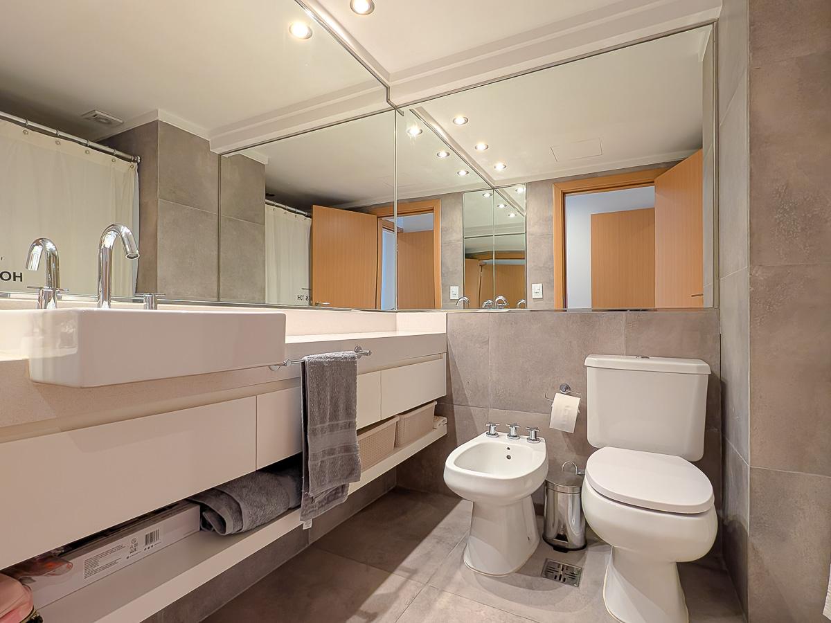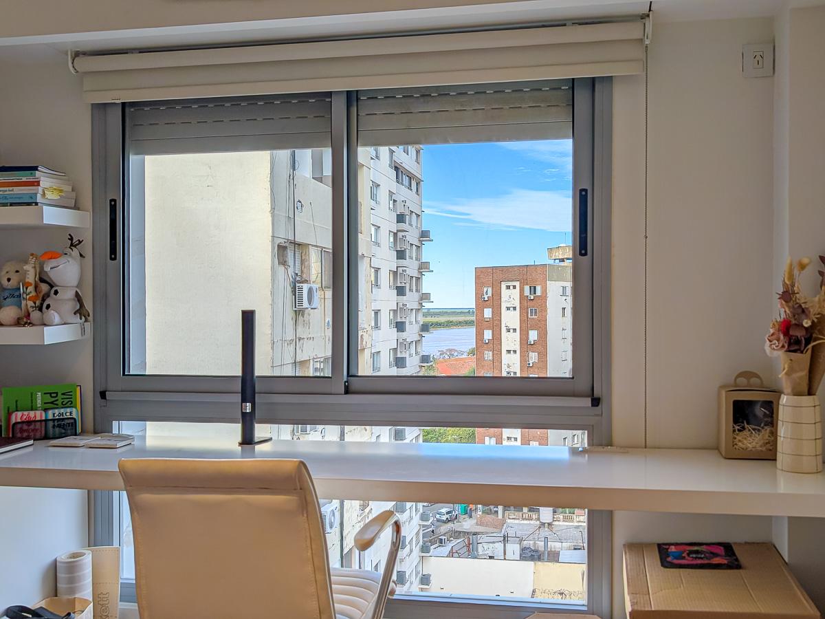 Espectacular semipiso de 2 dormitorios de 112 m2 con Balcón. Cochera en planta baja. Ventilación cruzada. Con Balcón aterrazado frente. Totalmente equipado. En la mejor Zona de Rosario a metros del río, calidad Rinaldi. Escritura inmediata.