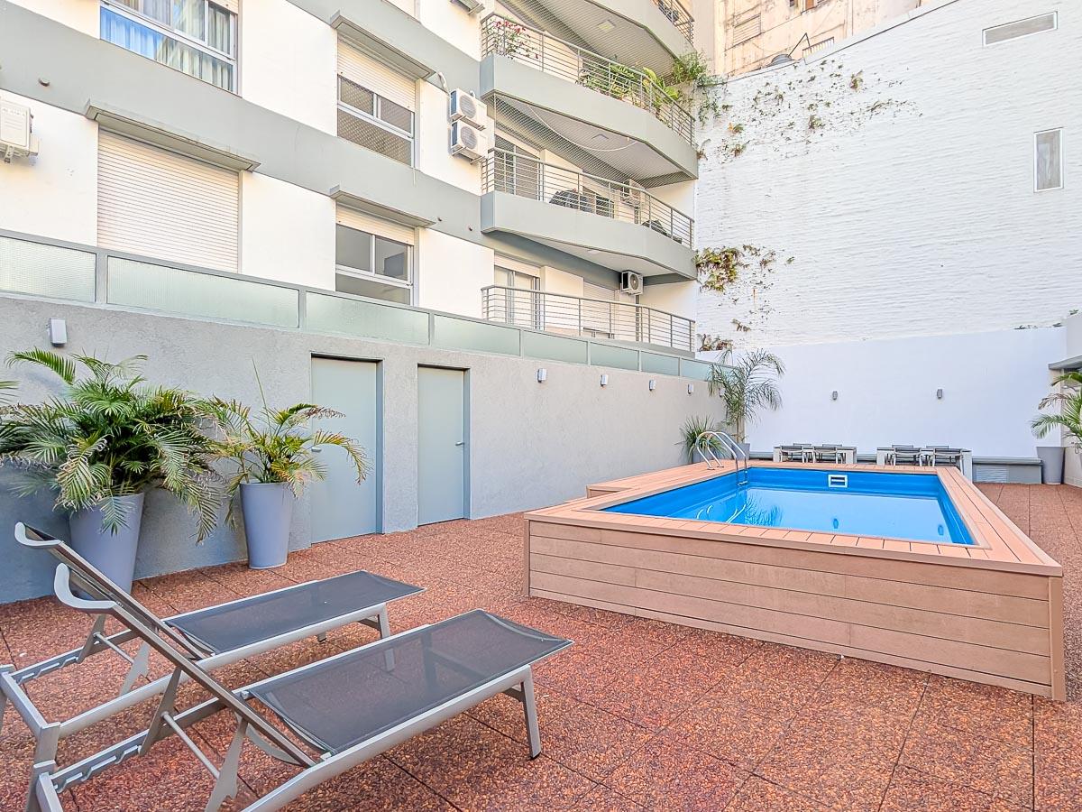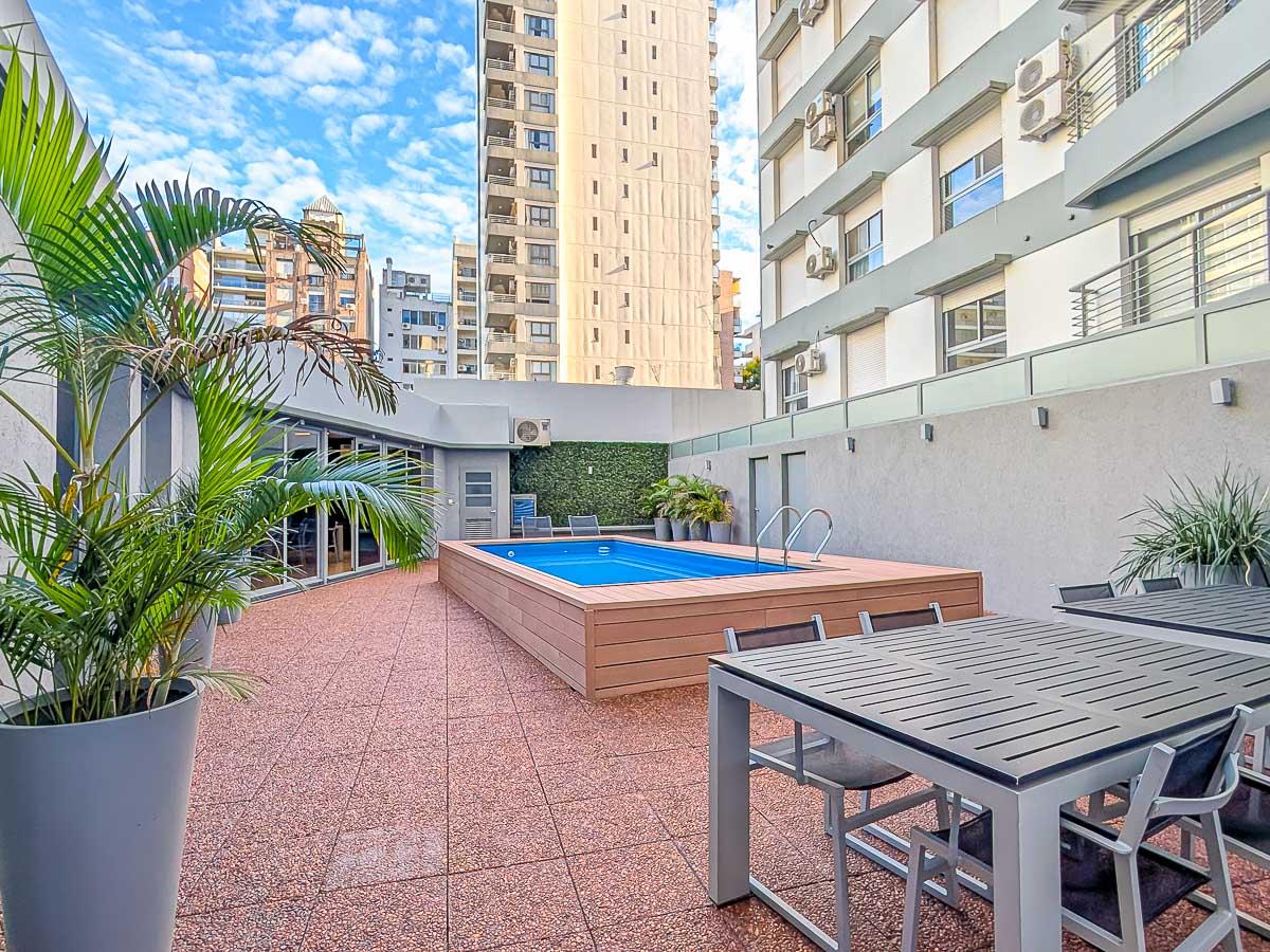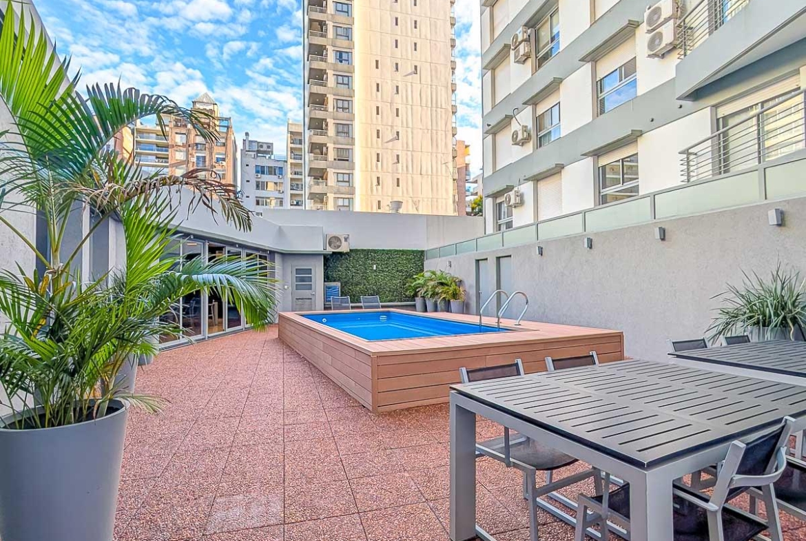 Edificio de 5 años. De planta baja y 13 pisos. Inmejorable ubicación en pleno parque España, a pasos del río y en las cercanías de Bv. Oroño. Calidad Rinaldi. Excelentes detalles de terminación. Piscina con solárium y Quincho cubierto equipado full en el 1 er Piso.