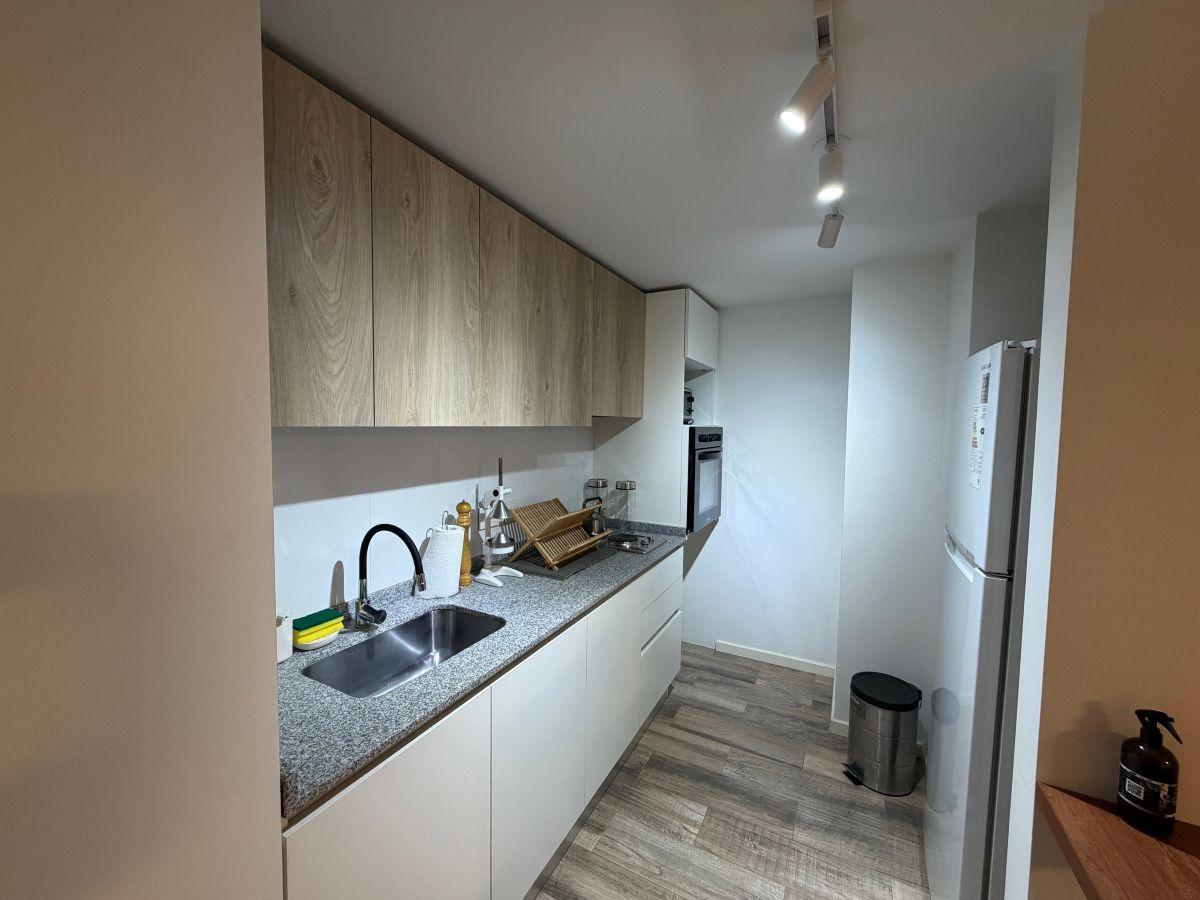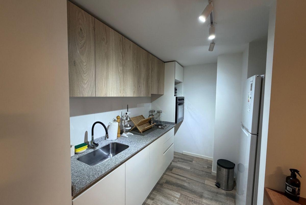 Ingreso al living comedor con salida al balcón con parrillero, cocina semi integrada equipada con barra desayunadora y espacio para lavarropas. 1 dormitorio con placard y baño completo con bañera. La unidad se encuentra equipada full tal cual está en las fotos.