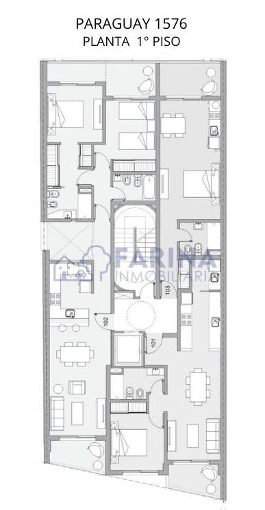 Edificio ubicado en pleno centro de la ciudad a metros de Av. Pellegrini. De planta baja y 9 pisos. Excelentes terminaciones. 3 Unidades por planta. En azotea cuenta con Solárium, Pérgola de diseño y parrillero.- Excelentes detalles de terminaciones.