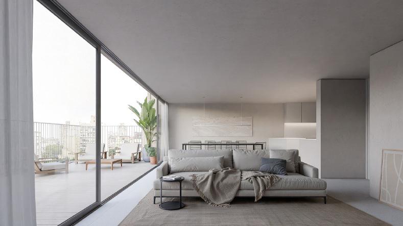 Terminaciones de calidad, detalles en hormigón visto, aberturas de aluminio con DVH (doble vidrio y control solar), pisos de porcelanato de primera calidad, mesada de cocina y baños en Pura Stone o similar, griferías fv o similar, artefactos marca ferrum o similar, mamparas en duchas tipo blíndex.