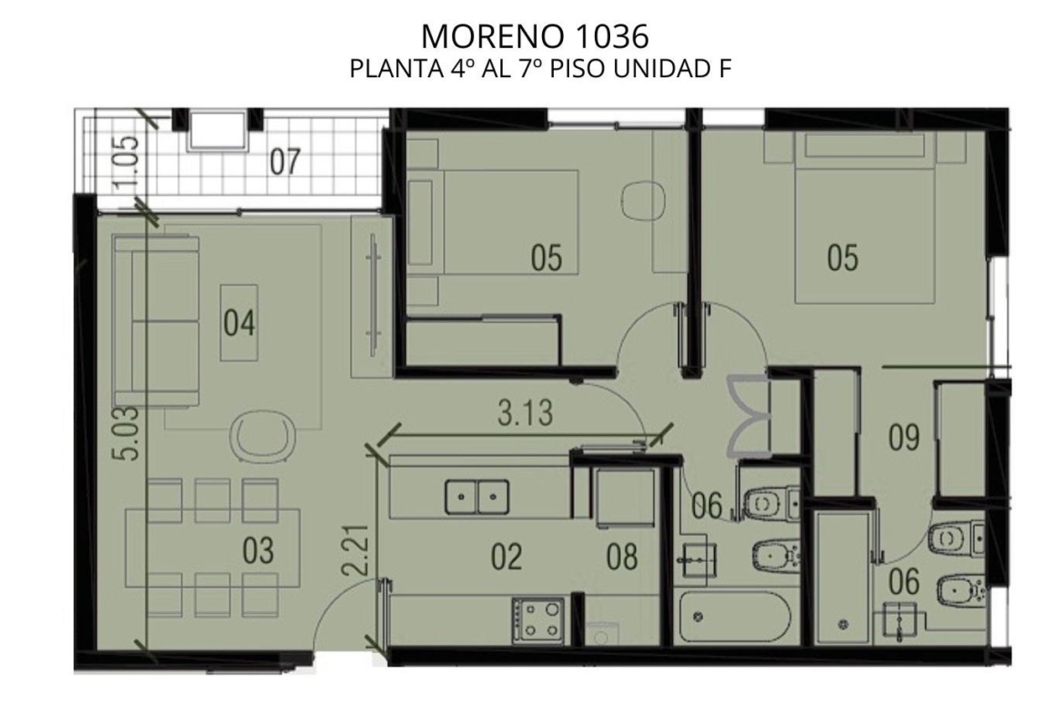 Departamento Premium en venta de 2 dormitorios ubicado en Moreno y San Luis, Centro de manzana. Frente noroeste. De 68.30 m2 con balcón. 63.90 m2 cubiertos y 4.40 m2 de balcón. Ingreso a living comedor con salida al balcón. Cocina semi separada. 2 dormitorios uno con Placard y el principal en suite con vestidor. Lavadero. Otro baño completo.